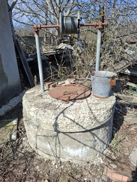 Есть фундамент под дом, вагончик где можно ночевать, колодец, сарай, туалет, бак для воды.
