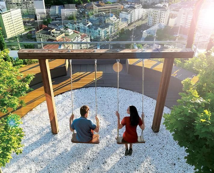 Спортивна зала, СПА, парк на даху, дитяча кімната, гостьовий хол, консьєрж-сервіс, охорона, карточна система доступу.