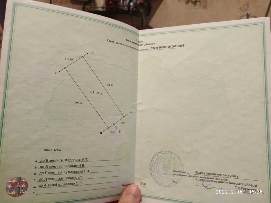 Пайова земля 4,52Га Київська обл; Продам пайову землю, 4.5199 га, 145 км від Києва, Володарський район, село Рубченки.