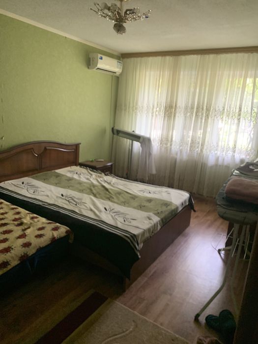 Саксаганський; Продам 3 х кімнатну квартиру на пр. Гагаріна [Університ), згт Рудана; Продам 3 х кімнатну квартиру на проспекті Гагаріна (Університетський) зупинка гт Рудана. Квартира розташована в другому під’їзді, на першому поверсі 5 поверхового будинку, не углова, будинок розташований по другій лінії від дороги. Квартира чешка, кімнати роздільні, загальна площа 69 кВ м, спальна кімната і зала по 18 кВ.м, дитяча спальна 15 кВ м, кухня 6 кВ.м. Зала і спальні дуже великі. Туалет та ванна кімната спільні. В 2006 році при купівлі кВ була замінена та перетягнута вся електро проводка, в кВ поштукатурені та вирівняні стіни, утеплена підлога, лінолеум, замінені вікна, двері, мається кондиціонер. Поряд з будинок є наш гараж (5 тис євро), на вікнах решітки, боргів не має. Є дозвіл виконкому та технічна документації на будівлю балкону. Продаю, оскільки виїхали за кордон.