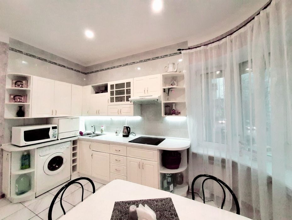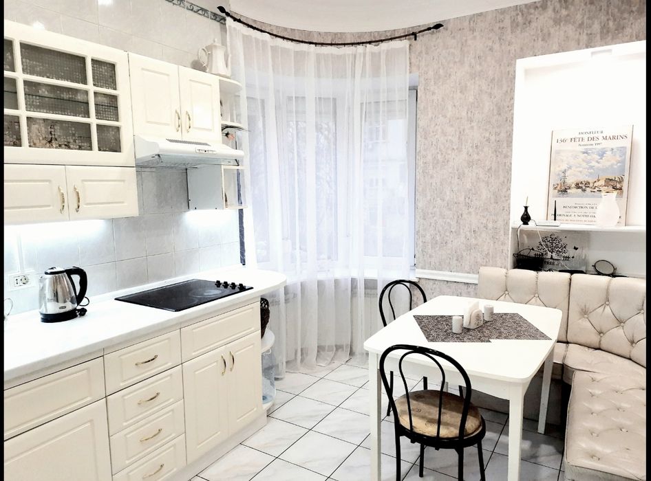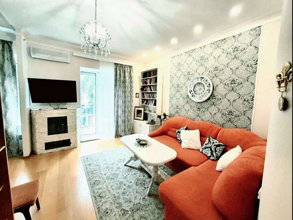 Квартира повністю облаштована. Сучасна планіровка із дизайн ремонтом. Спальня відокремлена напівстіною. Штучний камін.