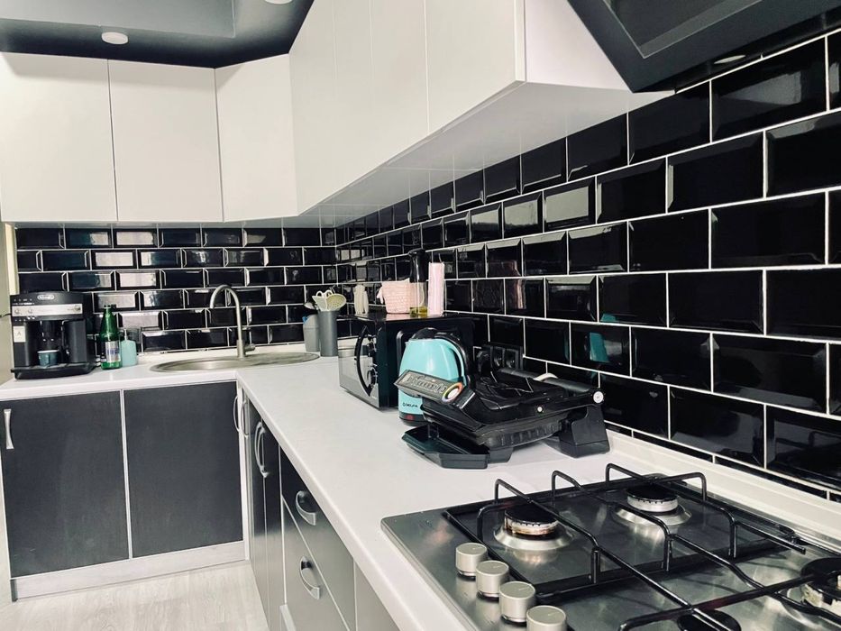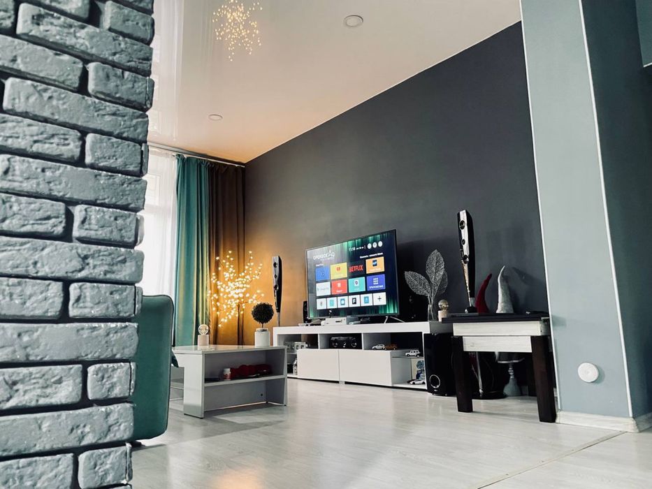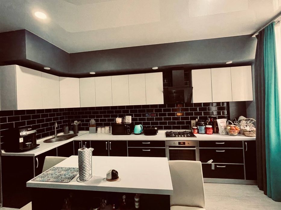 Дві кімнати - спальна та кухня-студія. Ремонт зроблений з нуля 2020 року (замінена проводка, усі труби, вікна, батареї, натяжна стеля , на підлозі ламінат). Меблі залишаються та крупна побутова техніка.