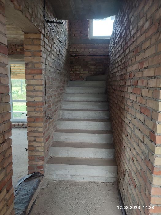 Каналізаційні труби положення і виведені на двір, чорнова стяжка, бетонні сходи можна обложити дервом або плиткою, зроблена проводка.
