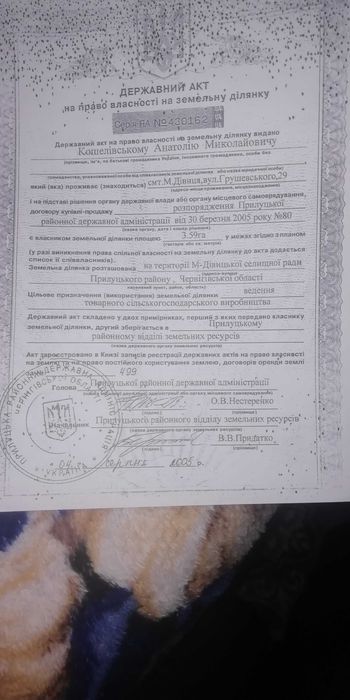 Продам пай 3,59 сільськогосподарського призначення; Продам пай сільськогосподарського призначення, знаходиться в оренді( до 2035 ) Звертайтеся до особистих повідомлень або за номером телефону.; кадастровий номер: 7424155900080000204