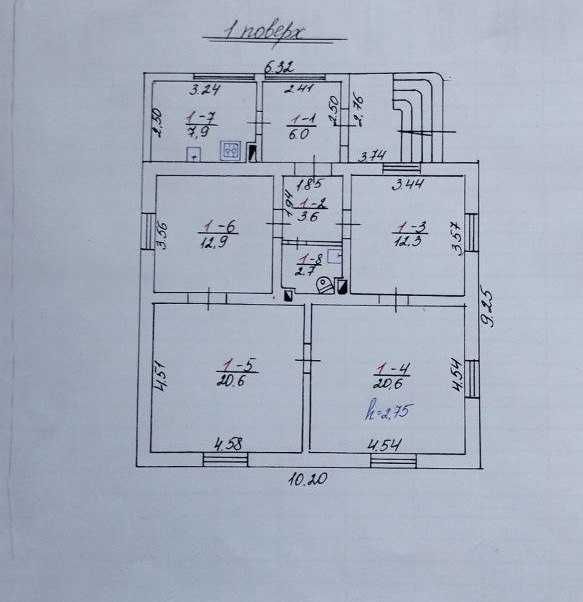 Загальна площа (кв.м): 86.6, житлова площа (кв.м): 66.4. Будинок складається з чотирьох житлових кімнат та кухні. Додатково: гараж, сарай, літня кухня, погріб. Загальна площа ділянки 7,24 соток, огороджена.