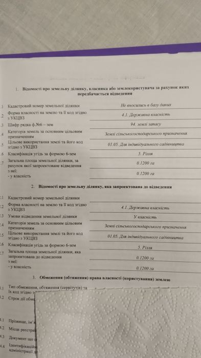 | Земельна ділянка: |