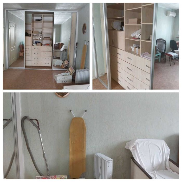 - есть встроенный шкаф-купе с 4 раздвижными дверцами из которых 2 с зеркалами во всю высоту. Шкаф на всю стену - шириной в 310 см и глубиной в 80 см.