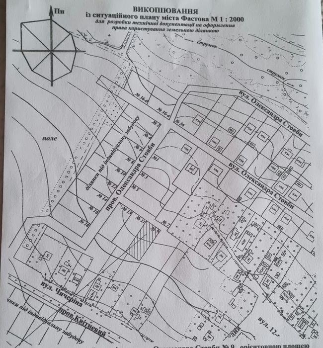 Земельна ділянка під забудову; Продам земельну ділянку під забудову 0,1000га. Цільове призначення: Для будівництва і обслуговування житлового будинку, господарських будівель і споруд. Провулок Героїв ЗСУ (Олександра Стовби), 9. Вулиця нова, розбудовується, поруч є газ та світло. Тихе та затишне місце. Неподалік є магазин, зупинки громадського транспорту. Є кадастровий номер.