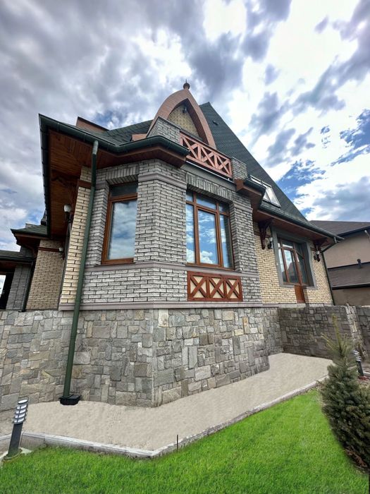 Оболонський; Дом Оболонь Богатырская 30а; Продаж будинку (6-кімн., 298 м2, 8 соток.) на березі Дніпра, м. Київ, Оболонь, вулиця Богатирська 30а, котеджне містечко Чорнобилець (прописка/реєстрація). Ст. м Героїв Дніпра, 5хв на Авто або 10хв на міській маршрутці. - Своя набережна, є спуск для човнів (Дніпро 200 метрів), магазин, дитячий майданчик, облаштована набережна, зупинка маршрутки біля посту охорони котеджного містечка. - Статусні сусіди, закрита територія. - Асфальтовані під'їзди. - Будинок побудований за унікальним дизайнерським проектом у стилі модерн, з урахуванням геології грунтів біля води - без підвалу, з високим цоколем. - Дах: скатна мансардна, покриття покрівлі Фінська гнучка черепиця Katepal. - Утеплення покрівлі 150мм вата. - Фасад та цоколь утеплений 100мм пінопласт. - Утемленная вимощення. - Фасад облицьований плиткою Фагот на морозостійкий клей, прикрашений багетами - з пінополістиролу. - Стіни цегла, 1й поверх зовнішні газоблок. - Цоколь і димоходи натуральний камінь (Болгарський сланець). - Вікна Rehau 2-х камерні склопакети, 5-ти камерний профіль 70мм. - Мансардні вікна Velux (Данія). - Водостічна система Польща Bryza. - Зливові колодязі під землею. - Тип фундаменту: стрічковий монолітний, тип перекриття монолітні з/б. - Зроблена внутрішня розводка електропроводки. - Поштукатурені стіни. - Електрика 3 фази, лічильник день/ніч. Заведено 50 кВт. (Обмежень по споживанню немає). - Фасадні світильники Польща Nowodvorski. - Відеоспостереження на 8 камер. - Інтернет (оптика волокно). - Підлоги на балконах граніт. - Газ. - Ділянка правильної форми: 40м ширина * 20м глибина (8 соток). - Сусіди побудувалися. - Документи на будинок і ділянку. Прекрасне місце для життя і відпочинку в межах Києва біля Дніпра у своєму домі! Будинок будується. Ціна зростає по мірі готовності.