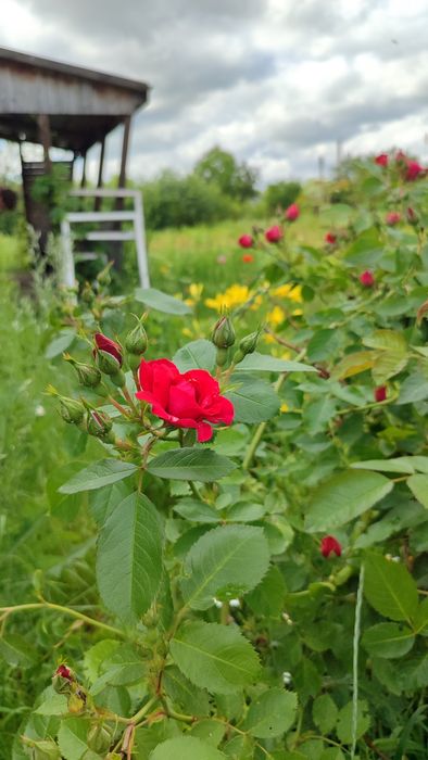 Ділянка 5 соток, земля чорнозем і кожного року удобрялася. На ділянці висаджено сортову малину, полуницю. Дерева: персики, яблуня голд, вишня.