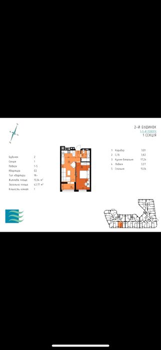 Загальна площа квартири: 42,17м².