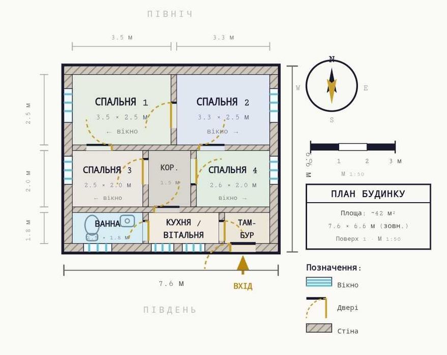 Площа будинку - 48 м² ;