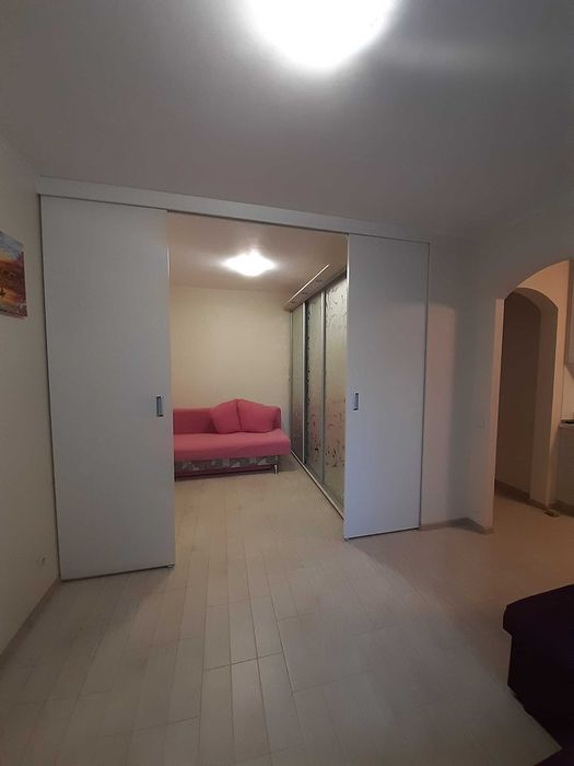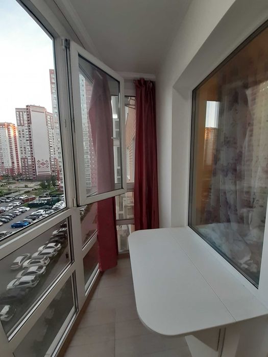 Дарницький; Оренда однокімнатна квартира 7 поверх Позняки; Квартира на 7 поверсі 1 кімнатна вул. Бориса Гмирі. В квартирі: 2 розкладних дивана, смарт телевізор, кондиціонер, бойлер, плита, мікрохвильова піч, холодильник, витяжка, пральна машинка, 3 шкафи купе, стіл розкладний на кухні, стіл маленький на балконі, велика містка кухня. Є мінімальний набур посуду. Кімната розділена розсувними дверима (зонування простору).