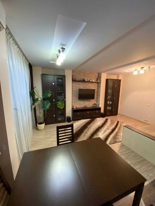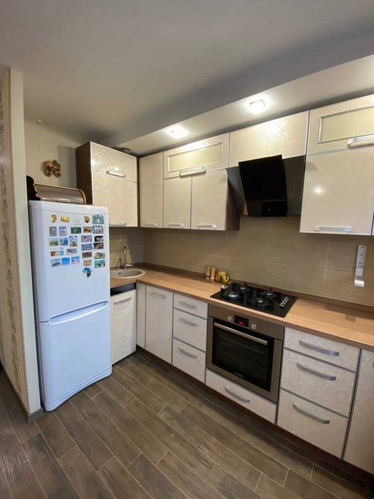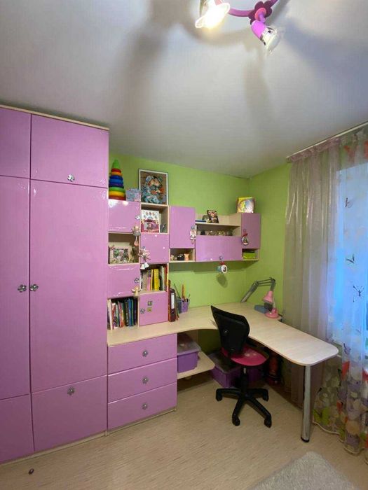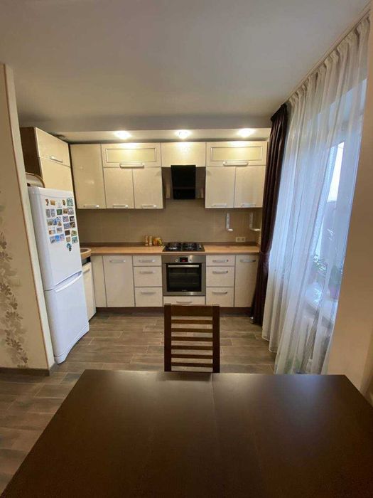 - Меблі: квартира повністю укомплектована — залишаються всі меблі, окрім пральної машини, духового шафи та обіднього столу зі стільцями.