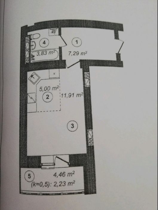 Однокімнатна смарт квартира розташована на першому високому поверсі.