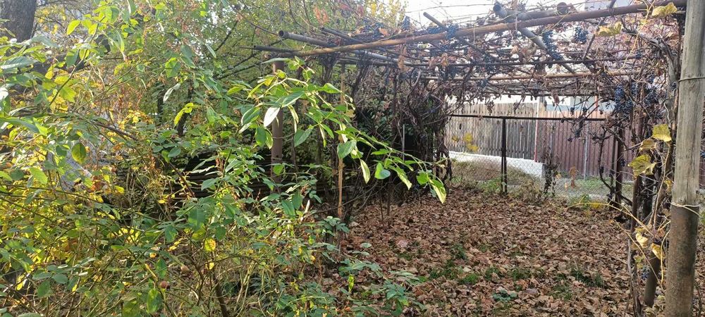 Широке подвір'я з фруктовим садом та городом, місце для стоянки машини.