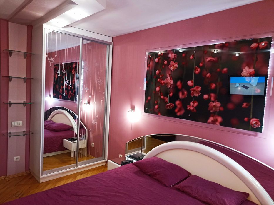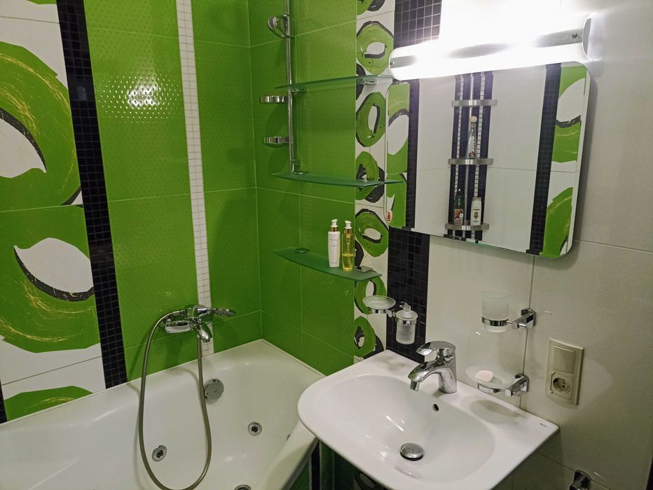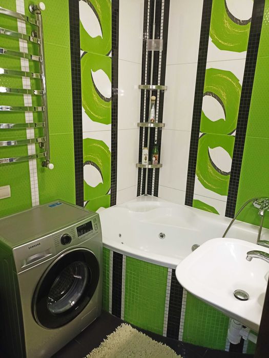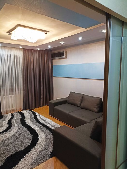 Квартира продається з ПОВНИМ КОМПЛЕКТОМ меблів і техніки - зі всім, що бачите на фото ( 3 телевізори, 2 кондиціонери, холодильник, пралка, сучасна духова та варочна поверхня , абсолютно нова мікрохвильова піч, стінка в вітальню, 2 дивани, двоспальне ліжко , декілька шаф, комодів, сучасна кухня ) вплоть до килимів, штор , люстр і т.д. ( тобто абсолютно з усім наповненням ) повністю « під ключ». Заходь, розклади дрібні особисті речі та живи.