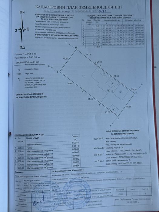 | Земельна ділянка: |