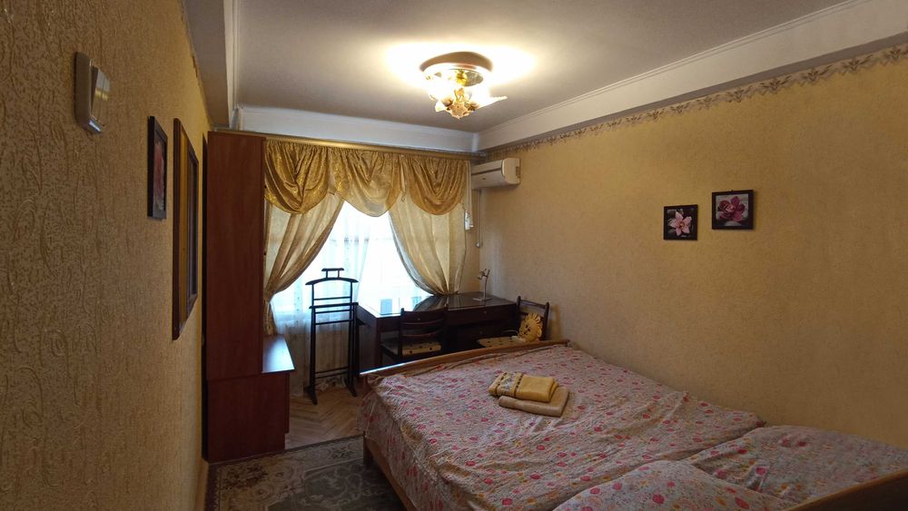 Печерський; Квартира в центрі Київа, біля Хрещатика. Бульвар Л. Українки 9.; Центр міста. Бул. Лесі Українки 9. Власна 4-кімнатна квартира на 4-му поверсі в цегляній 9-типоверховій будівлі з товстими стінами. ліфт, парковка, домофон, паркінг під охороною є у сусідньому будинку, Три окремі спальні з трьома окремими ліжками king size та вітальня з кутовим розкладним диваном.   У кожній кімнаті кондиціонер.  Smart-TV, панель 50" 4К, WiFi роутер, інтернет до 1 Gbit/sec. Є всі постільні приналежності. Засклений балкон, вікна на три сторони з подвійними склопакетами. Кухня з  газовою плитою, духовкою, посудом, мікрохвильовкою та електрочайником. Потужна пральна машина, електробойлер с двома окремими тенами. Окремі туалет та ванна. Можлива оренда на пару місяців