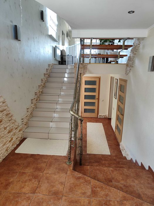 Продам будинок у м.Миргород; Продам будинок у м.Миргород, вул. Полтавська, 17. Загальна площа 243,5 кв.м, з них житлової 168,5 кв.м. Нежитлова площа включає в себе гараж і хоз. приміщення з окремим виходом. Опалення газове, водопостачання централізоване. Будинок утеплений, зроблена тепла підлога. Площа земельної ділянки 8 соток. В дворі є бесідка з меблями, мангальна зона. До центру міста 15-20 хвилин пішки, до найближчої школи і дитячого садочка – 10 хвилин. Неподалік є місцевий пляж, магазин, зона відпочинку. Будинок продається з меблями і побутовою технікою, все як на фото. Будинок під охороною.