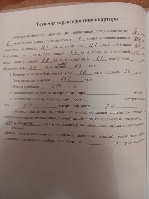 В квартирі є газова колонка, опалення централізоване.