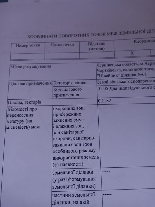 | Земельна ділянка: |