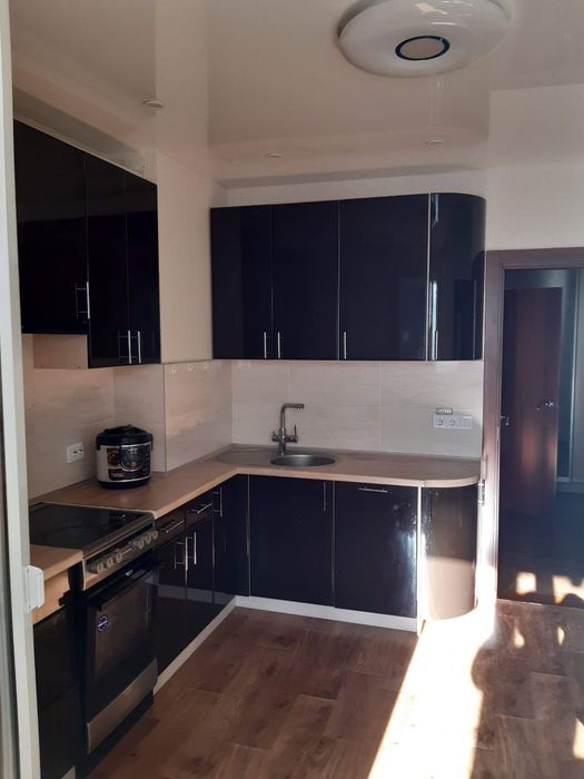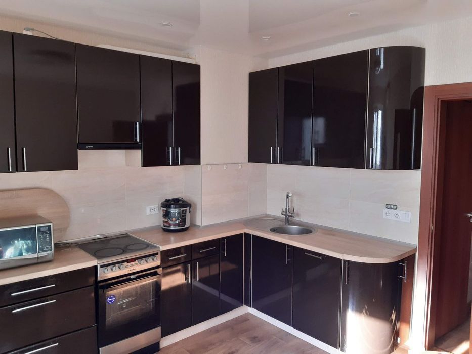 Кухня: обідній стіл, 4 стільці, кухонна стінка, кондиціонер, великий холодильник, мікрохвильова піч, піч з духовкою, витяжка, вбудована посудомийна машина, фільтр для води (можна пити воду з-під крана), вихід на лоджію.