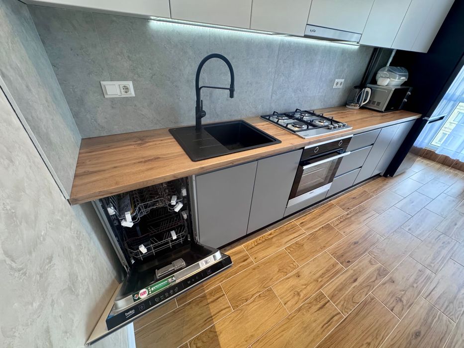 Квартира повністю укомплектована всіма меблями та технікою.