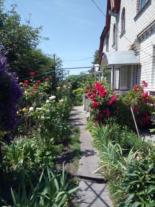 Під будинком є 2 гаражі для автомобілей, зберігання господарських інструментів, а також 2 підвальних приміщення. Під авто для заїзду у двір зроблена дорога з бетонна. До будинку веде нова асфальтована дорога. Великий доглянутий двір, криниця, літній душ, туалет. Окрема літня кухня, з пічкою і кімнатою. Надійний сарай з горищним приміщенням і курником. Погріб для зберігання продуктів. Вольєр для собаки . Величезний, плодоносний фруктовий сад. Земля під посадку(родючий чорнозем), ділянка впирається в річку. По території в'ється солодкий виноград, є кущі з смородини, крижовника, малини. Багато різних квітів, особливо троянд.