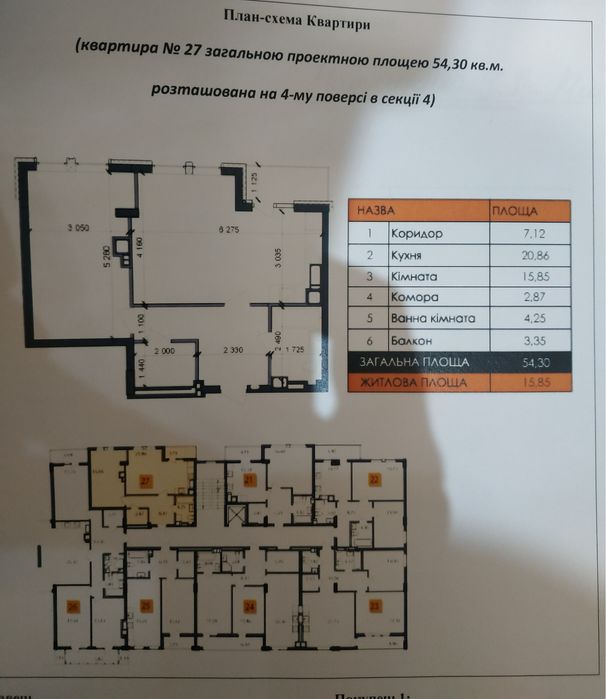 Загальна площа- 54.3 кв.м.,