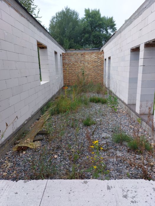 Площа ділянки 13,73 сот. Розмір ділянки 19м×71м. На ділянці побудований будинок без перекриття. Будинок побудований на капітальному фундаменті, за всіма правилами (перед цим були зроблені зразки грунту), будували для себе.