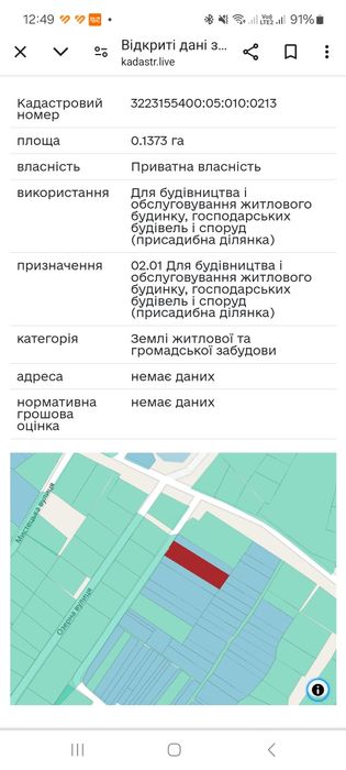 | Земельна ділянка: |