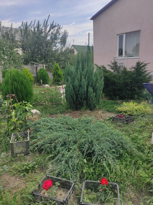 Насаджено плодові дерева, кущі, а також декоративні рослини.