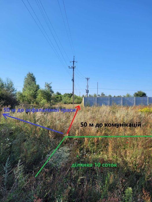Продам земельну ділянку під будівництво 25 км від Києва; Продам земельну ділянку в с. Гаврилівка. Бучанського району. 10 соток. Край села. Перша лінія від асфальтованої траси (50м). Поряд комунікації з можливістю підключення (електрика, газ) 50м. Сусіди вже будуються. В селі розвинена інфраструктура (школа, садочок, магазини, маршрутки на Київ). Документи в порядку. Продаж від власника. Ціна 5000 + витрати на переоформлення