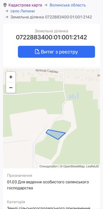 Земельна ділянка в с. Липини.; Продаж земельної ділянки в с. Липини від власника.