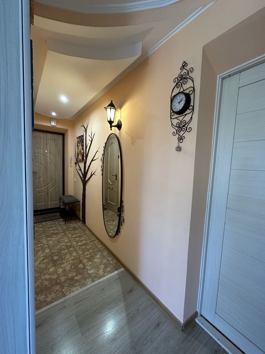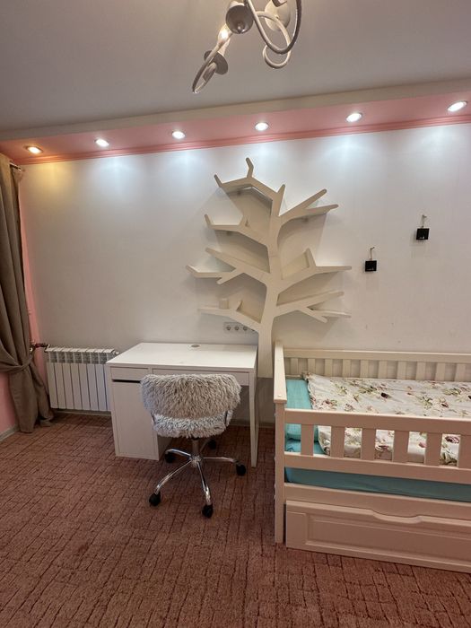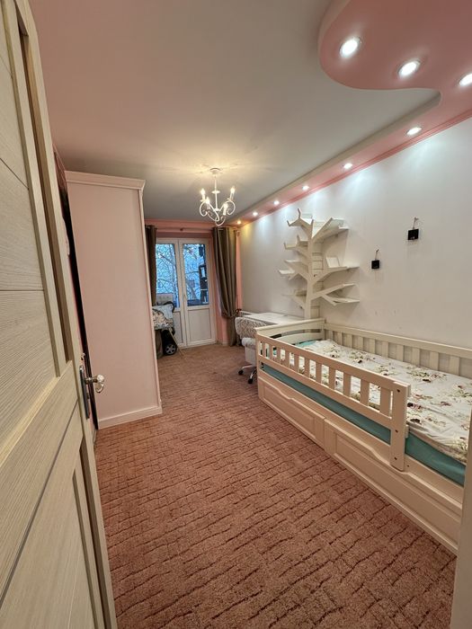 По плануванню: кухня студія з диваном та столом трансформером, окремо ліжко у ніші де можна усамітнитись, туалет та ванна кімната окремі, дитяча кімната з ліжком 90х200, всюди ортопедичні хороші матраци, у дитячій кімнаті постелений ковролін та є балкон. Все дуже зручно та продумано до дрібниць. Також велика кількість місць для зберігання.
