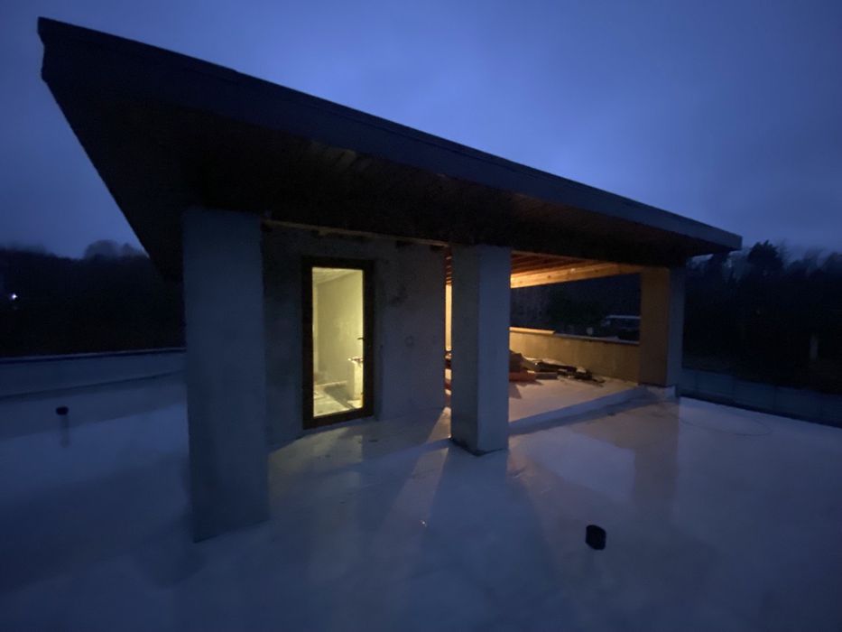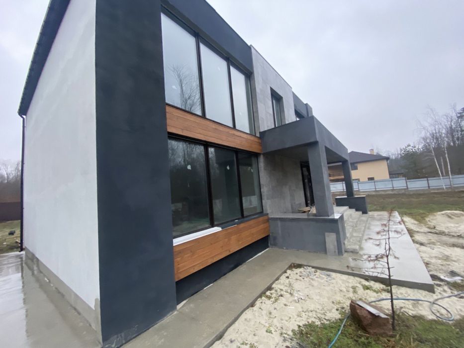 Будинок в с.Стоянка Хай Тек; Продам сучасний добротный в стилі хай -тек будинок в с.Стоянка, 200 кв.м + 40 кв.м терраса. Будувався не на продаж , з кращіх матеріалів … , розташований в оточненнi лiсу. На кришi розташована терраса з чудовим видом на лic . Великі панорамні вікна з видом на ліс . Зроблена сантехника , Встановлені батареï та встановлений камін ,Внутрішньопідлоговий конвектор , теплі поли , септик . залита чистова стяжка полу. Зроблена електрика. Поштукатурені стіни . Дiлянка 10сот, є можливість докупити сусідніх 10 сот та обєднати, свiтло та вода.. ( скважина) . Газ по вулицi. Цiна 186000$ власник , без комiсiï. Будинок за 3 км від КП, до метро житомирська 9км . Поруч супермаркет "Сільпо", винний магазин "Wine Time", ресторан "Радіо Тбілісі", відділення Нової пошти 1