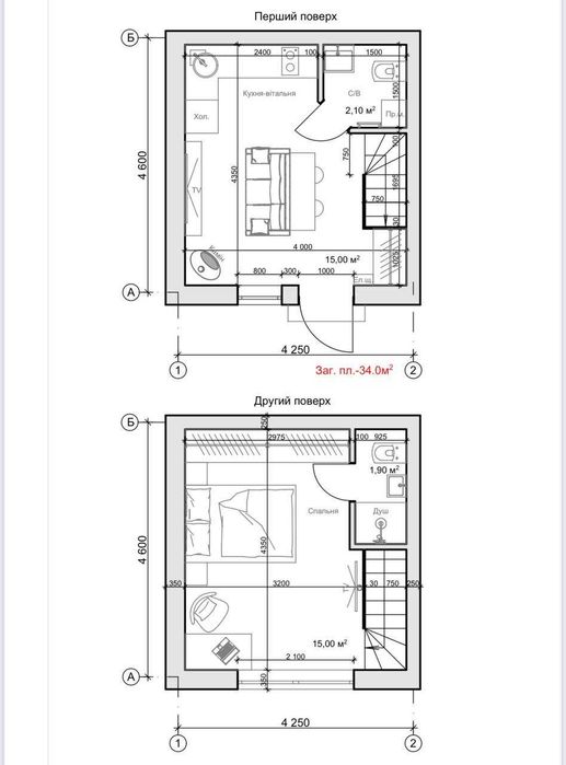 -Площа квартири: 34,8 м2