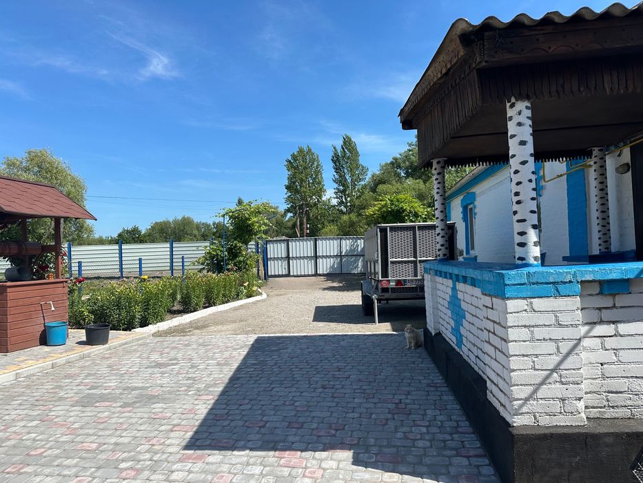 Продам будинок м.Погребище; Продам добрий будинок, який розташований на двох ділянках землі плюс поруч беріг для косовиці. Оснащенний газовим опаленням та двома грубками, є криниця та сад, замінені вікна та двері, у дворі постелина тротуарна плитка. На подвірї є погріб, літній душ, туалет, літня кухня із гаражем та коптільня. Центер міста, школа, лікарня у піші доступності. Розташований будинок на центральній асвальтовані дорозі.