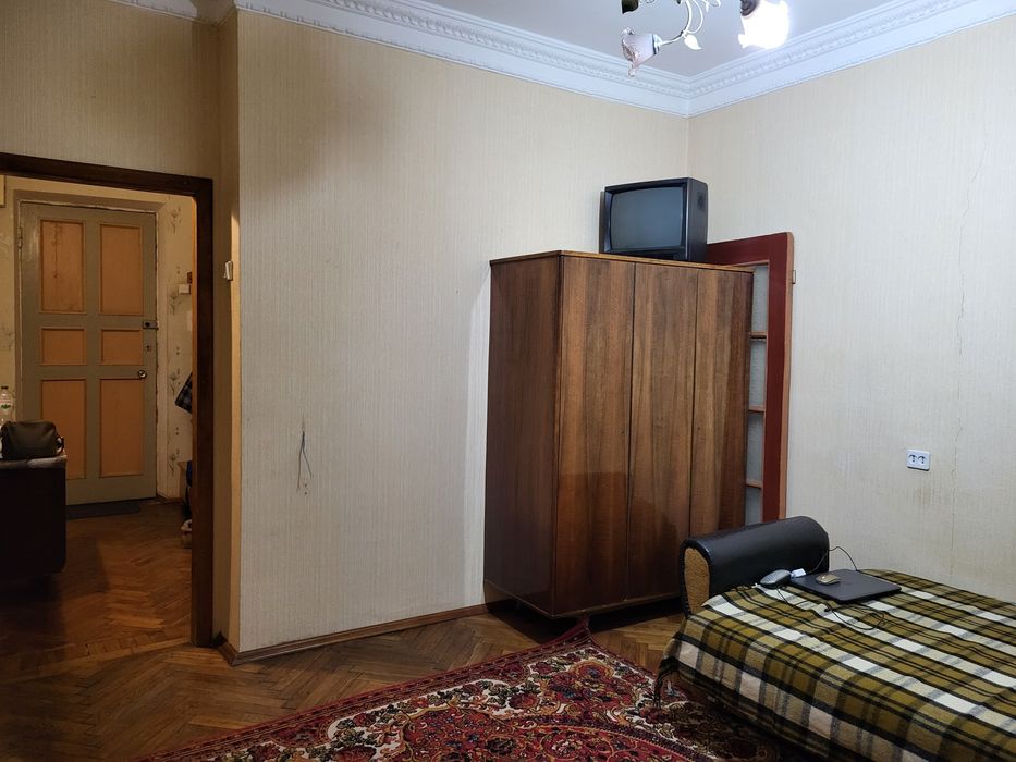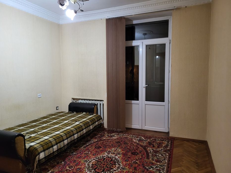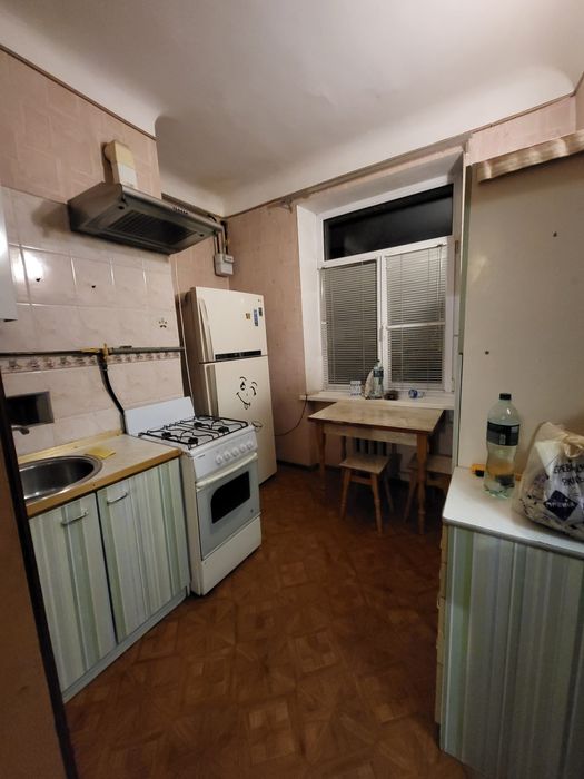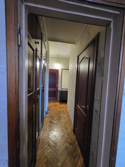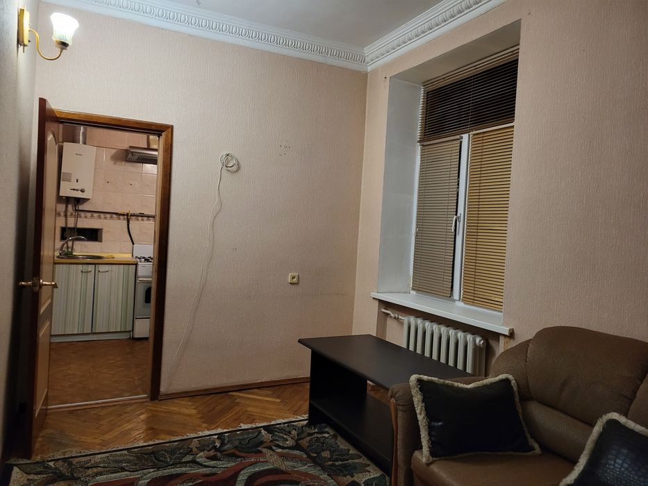 Невелика двокімнатна квартира (3 поверх із 5, сталінка), тепла та чиста, в житловому стані, вікна виходять у двір, є меблі та необхідна побутова техніка (холодильник, газова плита, пральна машина], газова колонка, завжди є тепла вода, встановлені лічильники на газ і електроенергію. В будинку є велике облаштоване бомбосховище з виходом у під'їзд, свій ключ від сховища, через дорогу Голосіївський парк. До метро Голосіївська 10-12 хвилин пішки, також поруч є зупинки громадського транспорту, магазини, банки, пошта, садочки, та інша інфраструктура.