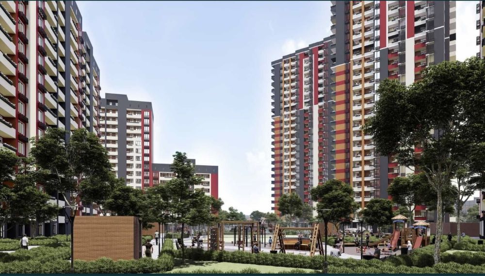 Внутрішня дворова територія комплексу буде захищена від проїзду машин, обладнана сучасними дитячими ігровими та спортивними майданчиками, також облаштована стадіоном та зонами відпочинку з прокладеними доріжками, щоб жителі могли спокійно розслаблятися у власному дворі у затишку та спокої після напруженого дня.