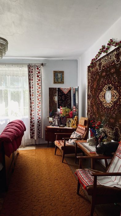 Цегляний будинок в селі; Жилий будинок(1,5), 3 великих кімнати і великий коридор(ганок). 16 сотих подвірʼя з городом, 100м2 і літня кухня 20м2, стайня і стодола. В будинку є все необхідне для проживання. Пічне опалення(на дровах).Криниця на подвір’ї. До райцентру Рогатин - 17 км. Є сполучення на Львів, Івано-Франківськ(автобус і залізниця). 1984 року. Цегляний. Всі деталі по номеру 09*********39