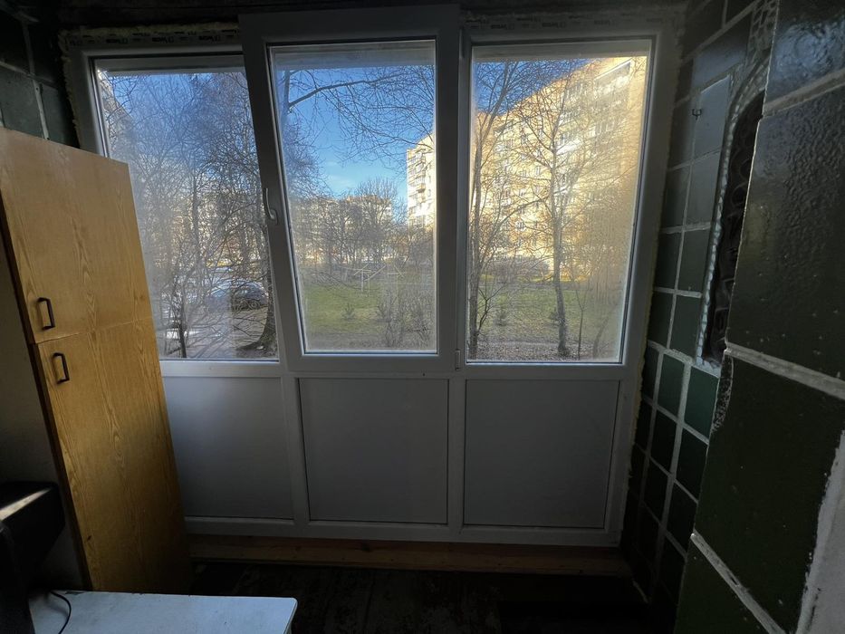 Квартира розташована у цегляному будинку на першому поверсі (з п'яти), не кутова, вікна виходять на дві сторони (у внутрішній двір, не над шумовою дорогою).