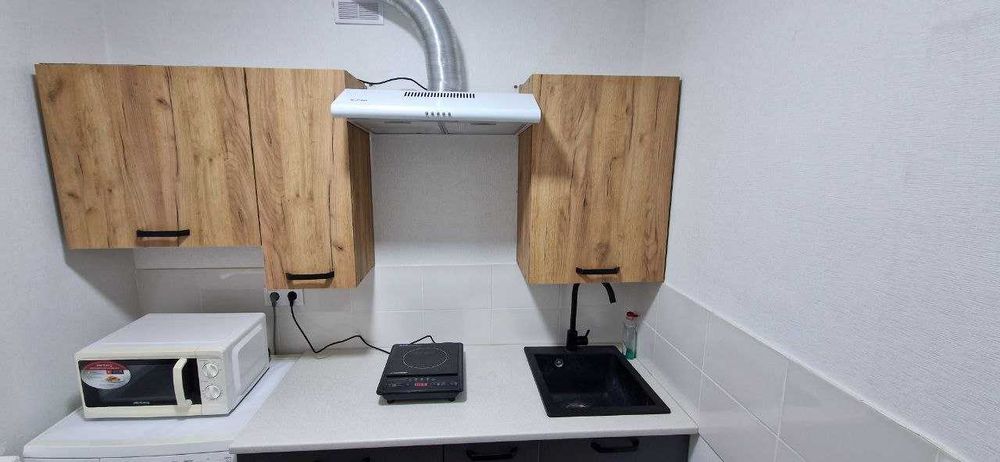 Меблі, кухня, пральна машина, холодильник, індукційна плита, мікрохвильова піч, бойлер. Централізоване опалення + додатковий обігрівач (керамічна плита).