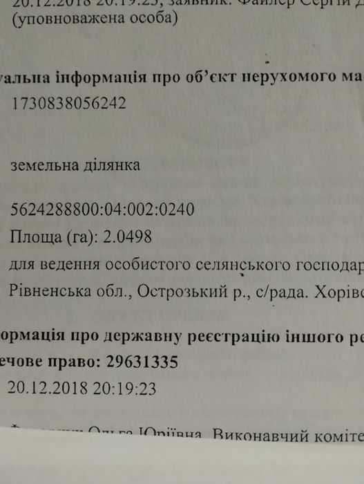 Продаж землі сільськогосподарсь кого призначення земельний пай; Продаж пая 2,4 г , в Рівненській області, Острозького району