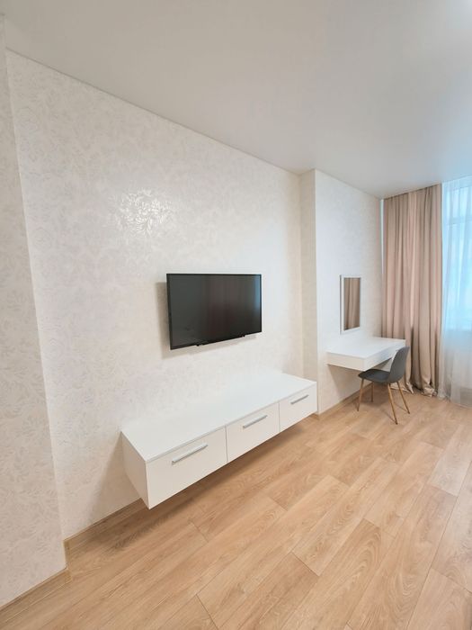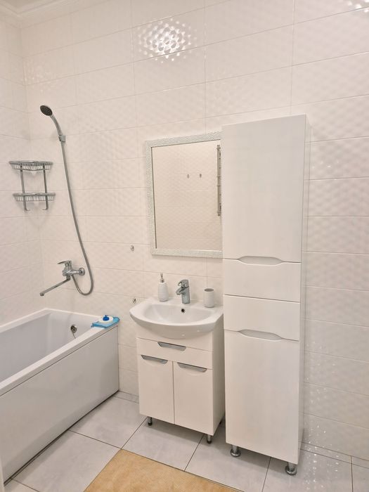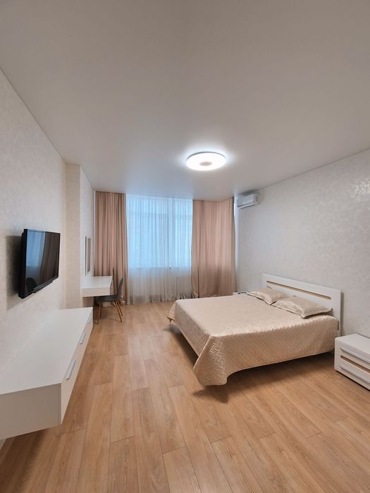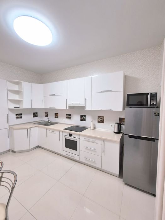 Квартира светлая,укомплектована всем необходимым для комфортного проживания:электродуховка,микроволновка,холодильник, стиральная машина,2 кондиционера,телевизор, бойлер,электрочайник,посудомоечная машина,утюг,гладильная доска,встроенная кухня,двуспальная кровать,раскладной диван,необходимая посуда.