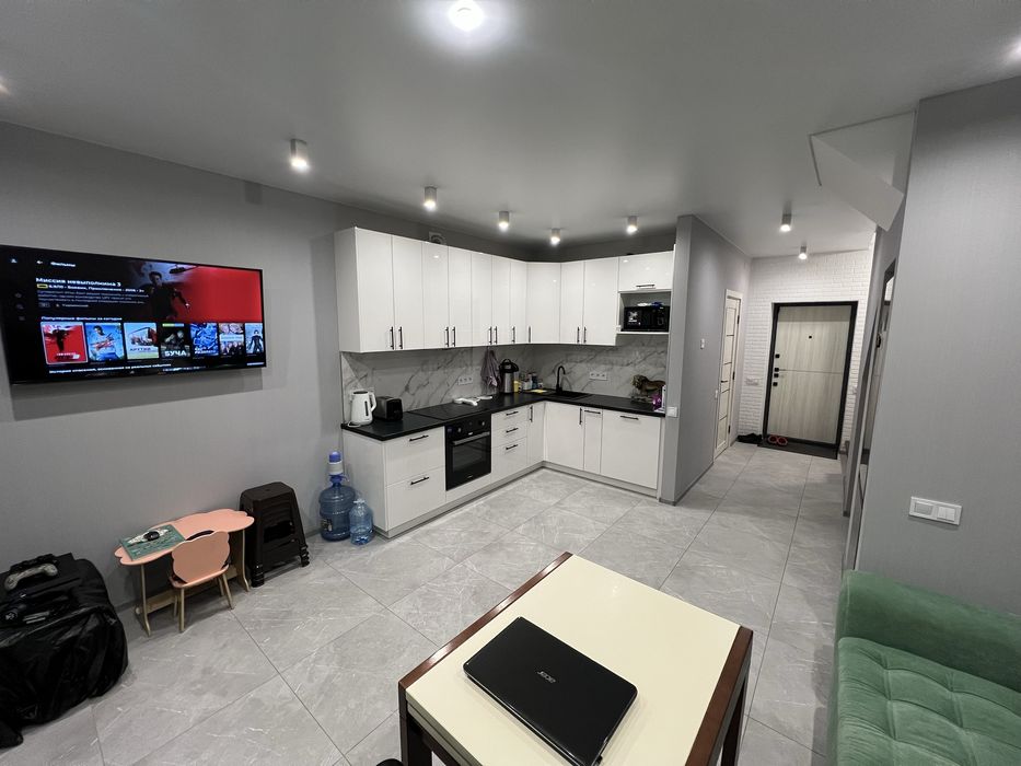 Удобная планировка,на первом этаже большая кухня-студия с выходом на свой задний дворик,зона BBQ.просторный санузел.Встроенная красивая крашеная кухня,с качественной техникой.Тёплые полы, по всему периметру первого этажа,газовое отопление.Сделана качественная шумоизоляция от соседей.Деревянная лестница делалась под заказ.На втором этаже две большие спальни,гардероб с встроенным шкафом,остеклённый балкон с отоплением.Ремонт делали для себя.Стоит охрана «Карабинер».Свои камеры видеонаблюдения,освещаемая территория Своё место для парковки.Поблизости магазин (АТБ),Ресторан (Аракс),детские площадки.Цена 67500$