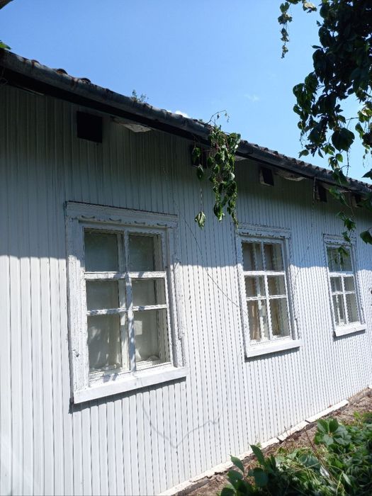 Продам будинок. Київська область, Богуславський район, село Дибинці; Продається будинок Київська область, Богуславський район, с. Дибинці. Будинок саманний, обкладений пластиком. Загальна площа 75 кв.м. Три кімнати (зала 28 кв. м), дві спальні, кухня, санвузол, веранда. Висота стелі - 2.6 метри. Опалення газове та дров’яне. Батареї чугунні. В будинку є дров’яна піч та дві груби між кімнатами. У дворі криниця. Вода з криниці подається в будинок. Також гараж, літня кухня, приміщення для тримання птиці, великий погріб. Будинок розташований в лісній зоні, річка Рось - 5 хвилин на машині. Загальна площа – 40 соток, фруктові дерева. До Києва 120 км, до Богуслава 6 км.