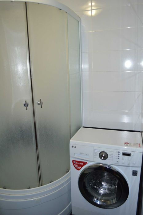 Есть холодильник, телевизор, стиральная машина (автомат), бойлер, душевая кабина, кондиционер, диван, шкаф, компьютерный стол, кухонная мебель.