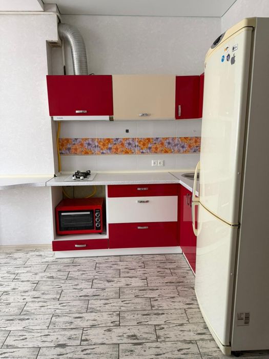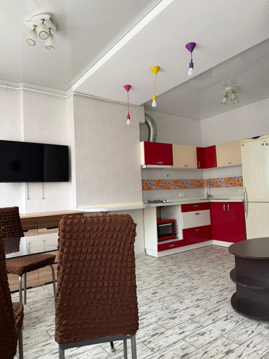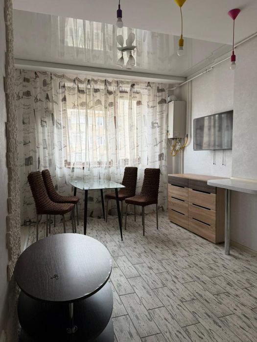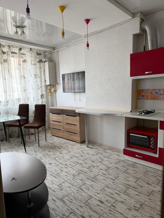 -кухня-студия с удобным диваном ,письменным столом ,обеденным столом и всей необходимой техникой;